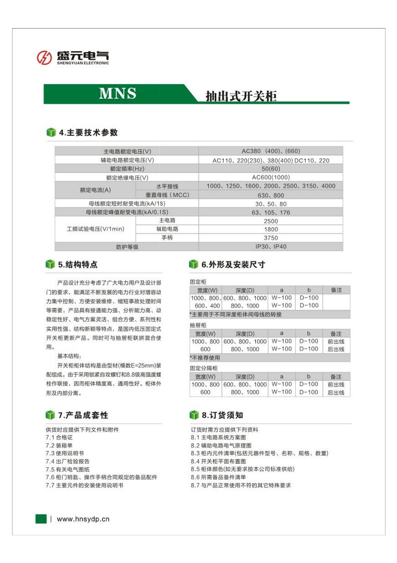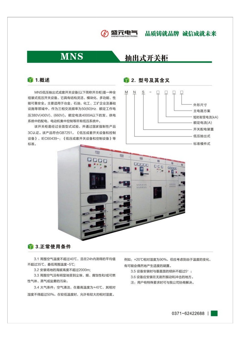 MNS配电柜,MNS型低压抽出式成套开关设备(以下简称开关柜)为适应电力工业发展的需求,参考国外MNS系列低压开关柜设计并加以改进开发的高级型低压开关柜,该产品符合国家标准GB7251、VDE660和ZBK36001-89《低压抽出式成套开关设备》、国际标准IEC439规定MNS型低压开关柜适应各种供电、配电的需要,能广泛用于发电厂、变电站、工矿企业、大楼宾馆、市政建设等各种低压配电系统。